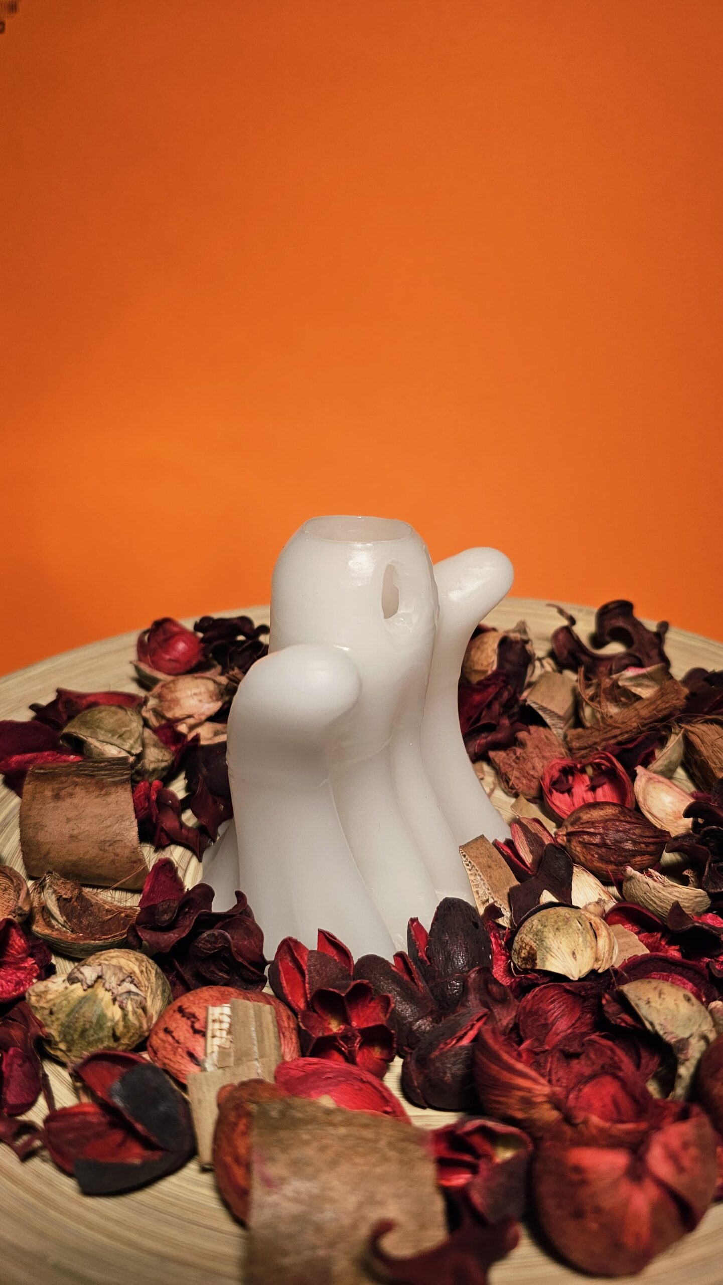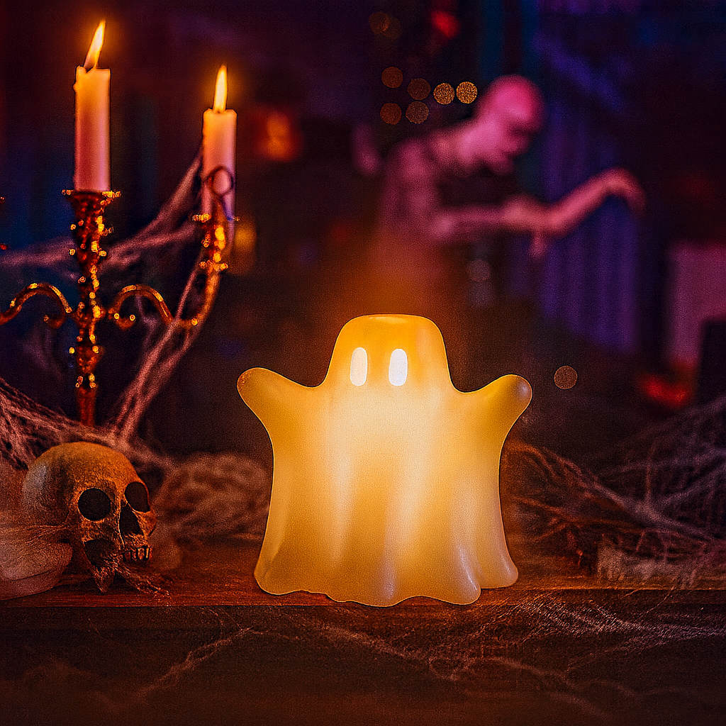 Halloween serimizin tartışmasız en tatlı tasarımı, gözleri tatlı bir korkuyla ışıl ışıl yanan sevimli hayalet karşınızda.